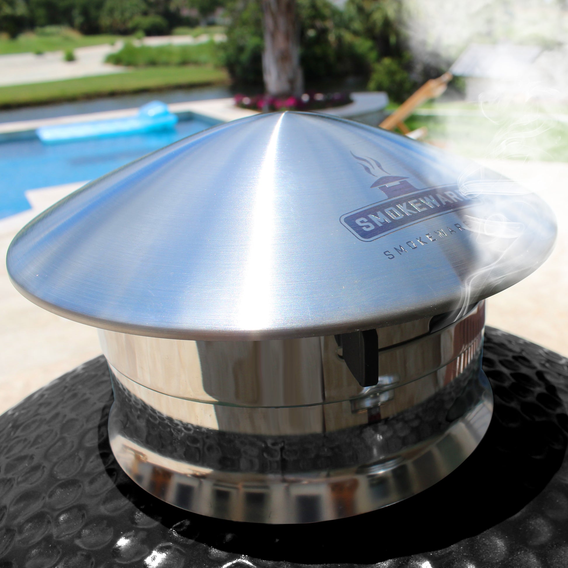 The Chimney Cap for BGE is so versatile it replaces the daisy wheel & porcelain cap. And there is no need for any extra rain attachment or the rEggulator with our Cap. Made of 304 Grade Stainless Steel, it includes a New Tapered vent design for better low temperature control.