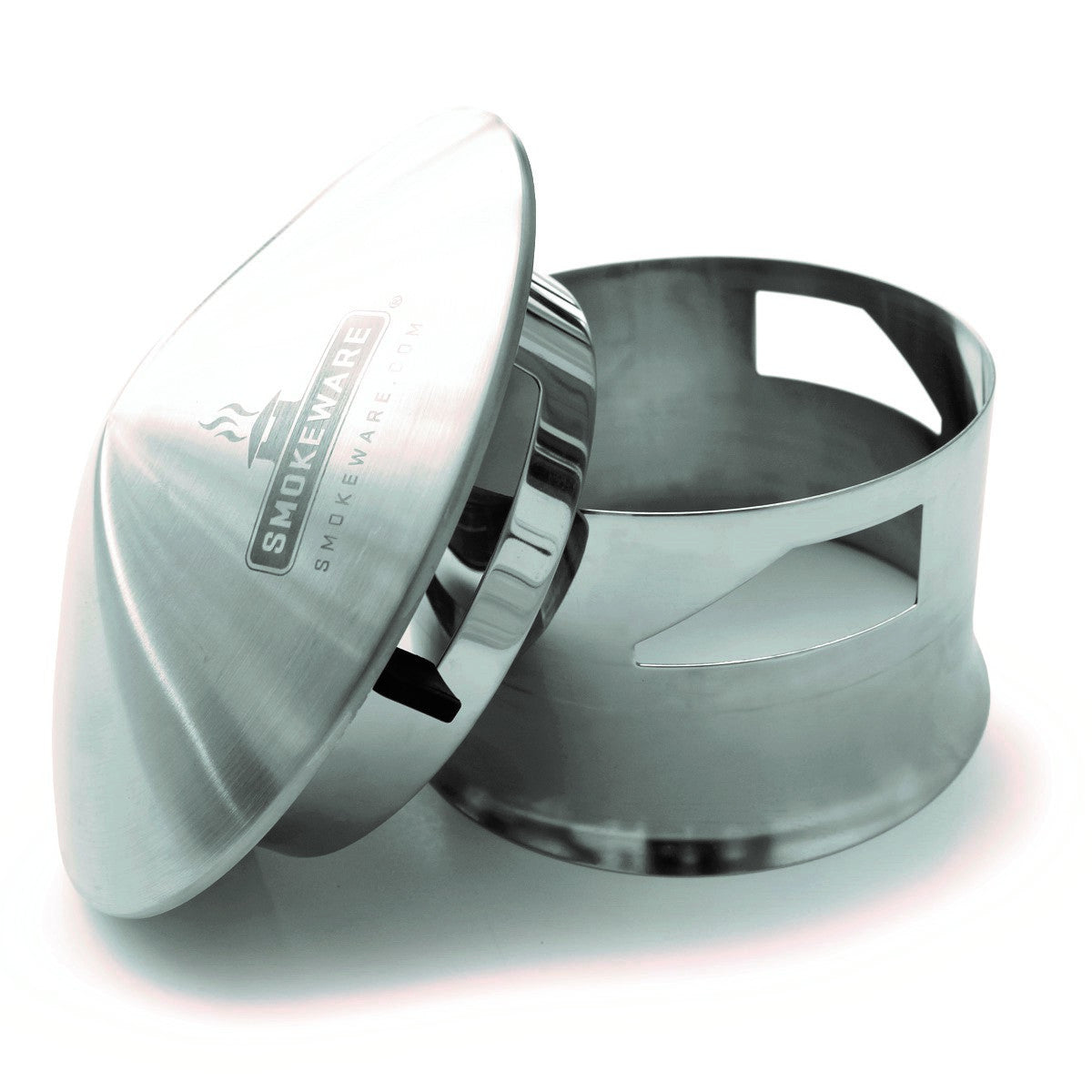 Hot. This Smokeware Chimney Cap is made of Stainless Steel and will become hot once the grill is heated. Do not touch any part of the metal once the grill is heated, use the rubber tab, a high temperature approved glove or a cooking utensil to adjust the vent setting.